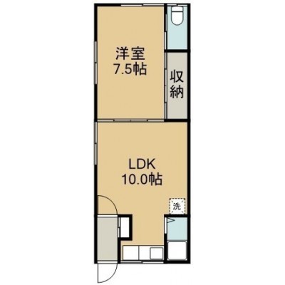 1LDK(33.12m²)└ 1階:LDK10帖 洋室7.5帖