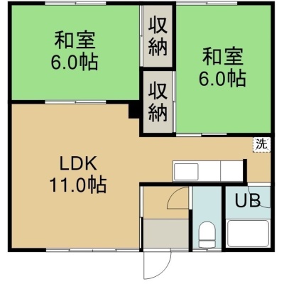 2LDK(49.33m²)└ 2階:LD9帖 K2.3帖 洋室6帖 和室6帖