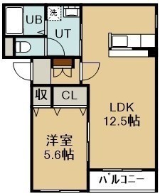 1LDK(45.68m²)└ 1階:LDK12.5帖 洋室5.6帖