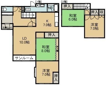 4LDK(92.74m²)└ 1階:LD10帖 K7帖 和室8帖 洋室7帖 / 2階:洋室7帖 和室6帖