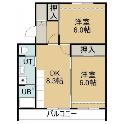2DK(50.69m²)└ 3階:DK8.3帖 洋室6帖 洋室6帖