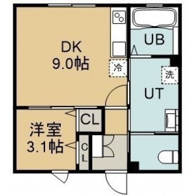 1DK(31.55m²)└ 2階:DK9帖 洋室3.1帖