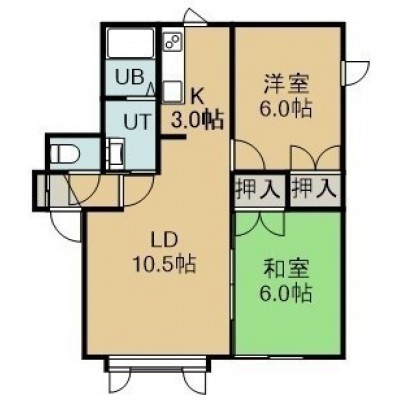 2LDK(52.59m²)└ 2階:LD10.5帖 K3帖 洋室6帖 和室6帖