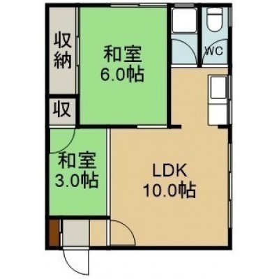 2LDK(40.38m²)└ 2階:LDK10帖 和室6帖 和室3帖
