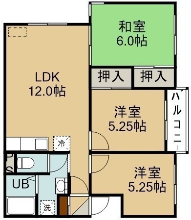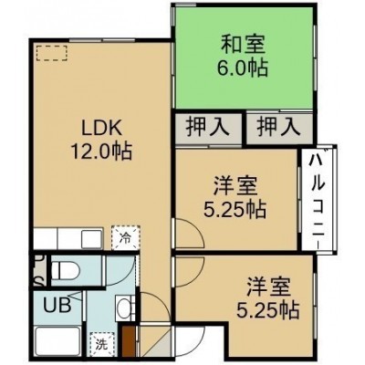 3LDK(60.15m²)└ 3階:LDK12帖 和室6帖 洋室5.25帖 洋室5.25帖