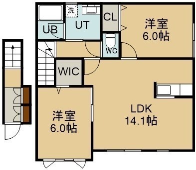 2LDK(61.48m²)└ 2階:LDK14.1帖 洋室6帖 洋室6帖