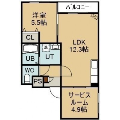 1SLDK(50.45m²)└ 4階:LDK12.3帖 洋室5.5帖 S4.9帖
