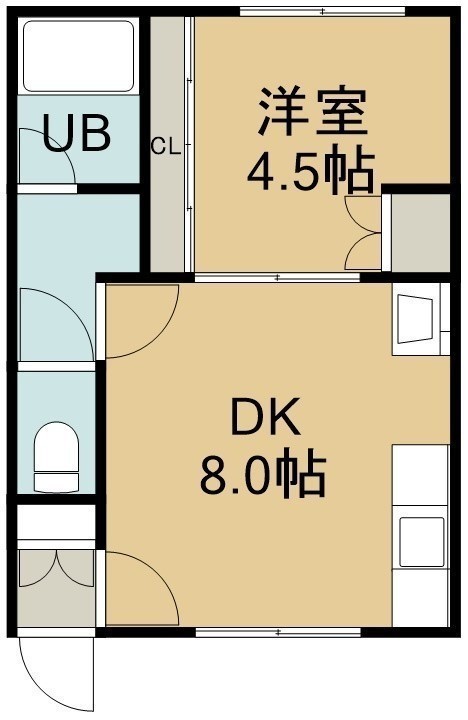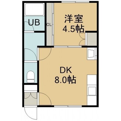 1DK(27.72m²)└ 1階:DK8帖 洋室4.5帖