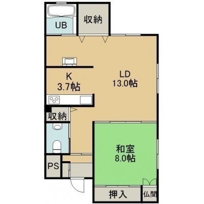 1LDK(66.66m²)└ 1階:LD13帖 K3.7帖 和室8帖
