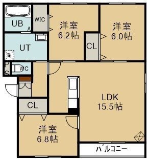 3LDK(76.2m²)└ 1階:LDK15.5帖 洋室6.8帖 洋室6.2帖 洋室6帖