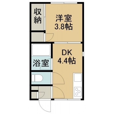 1DK(23m²)└ 2階:DK4.4帖 洋室3.8帖