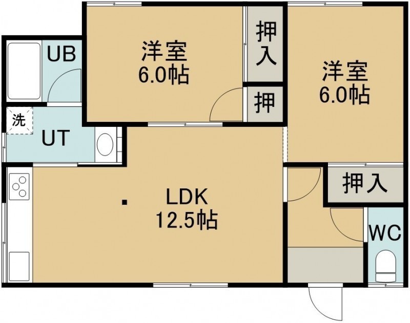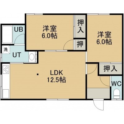 2LDK(56.31m²)└ 1階:D12.5帖 洋室6帖 洋室6帖
