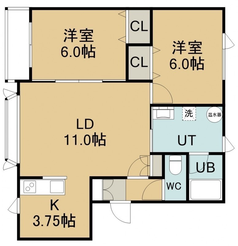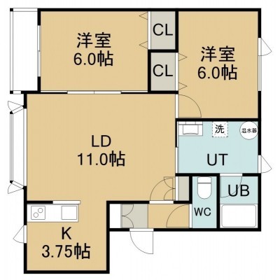 2LDK(58.42m²)└ 2階:LDK14.5帖 洋室6帖 洋室6帖