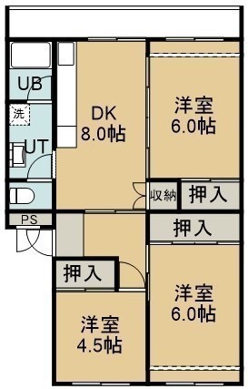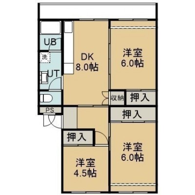 3DK(61.12m²)└ 4階:DK8帖 洋室6帖 洋室6帖 洋室4.5帖