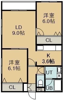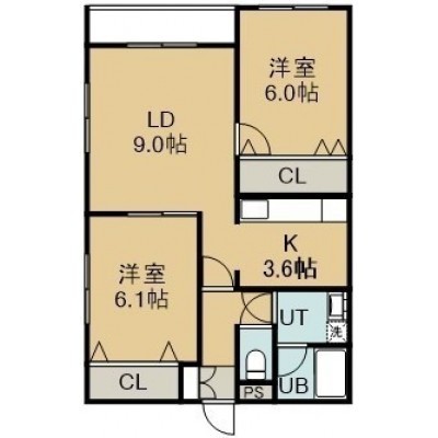 2LDK(58m²)└ 1階:LD9帖 K3.6帖 洋室6.1帖 洋室6帖