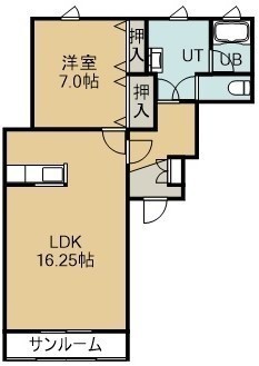 1LDK(44.36m²)└ 2階:LDK16.25帖 洋室7帖