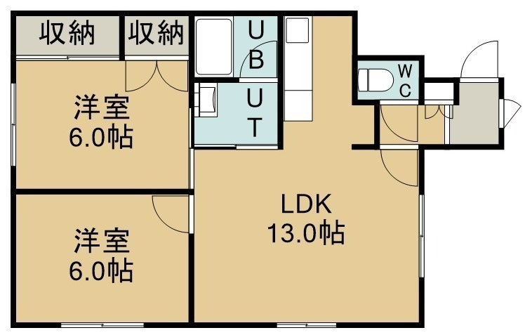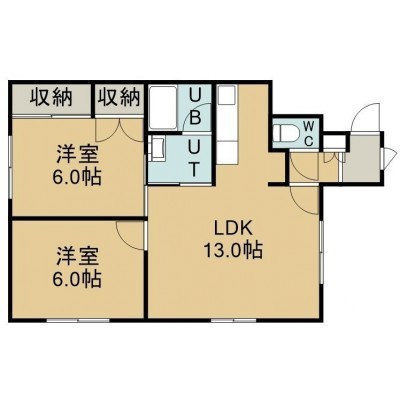 2LDK(57.45m²)└ 1階:LDK13帖 洋室6帖 洋室6帖