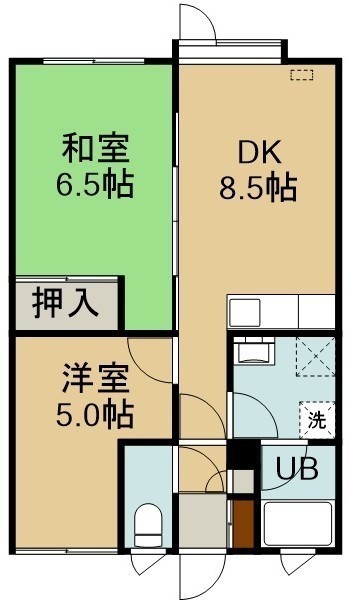 2DK(49.24m²)└ 2階:DK8.5帖 洋室5帖 和室6.5帖