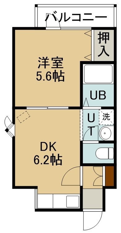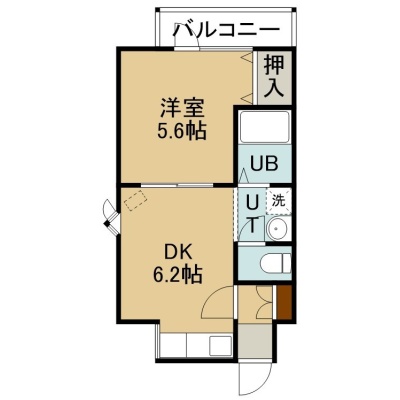 1DK(25.01m²)└ 2階:DK6.2帖 洋室5.6帖
