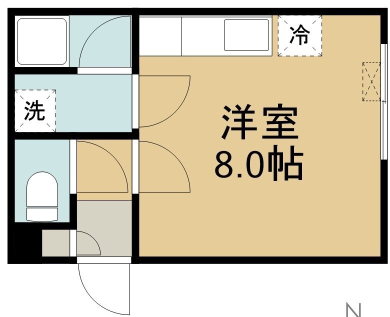 ワンルーム(19.58m²)└ 2階:洋室8帖