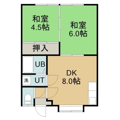 2DK(39.67m²)└ 2階:DK8帖 和室6帖 和室4.5帖