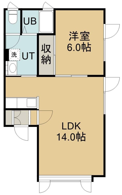 1LDK(44.62m²)└ 2階:LDK14帖 洋室6帖