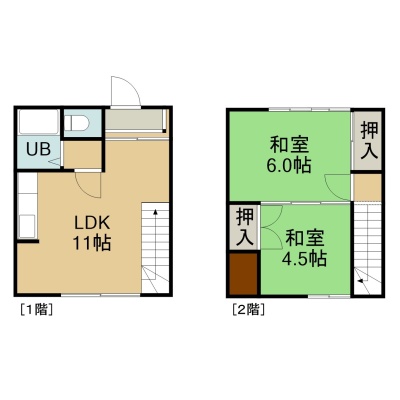2LDK(49.92m²)└ 1階:LDK11帖 和室6帖 和室4.5帖