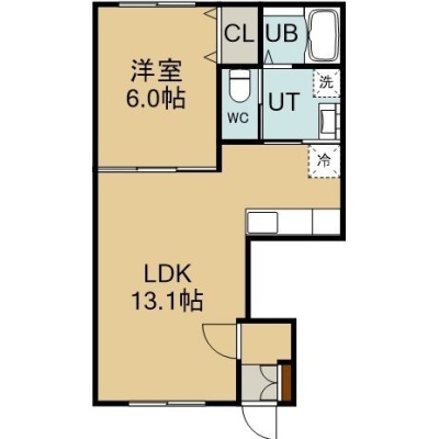 1LDK(41.81m²)└ 1階:LDK13.6帖 洋室6帖