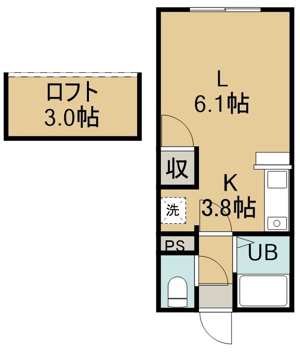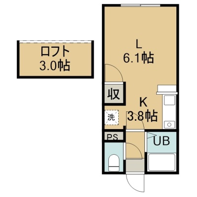1K(19.85m²)└ 1階:洋室6.1帖 K3.8帖