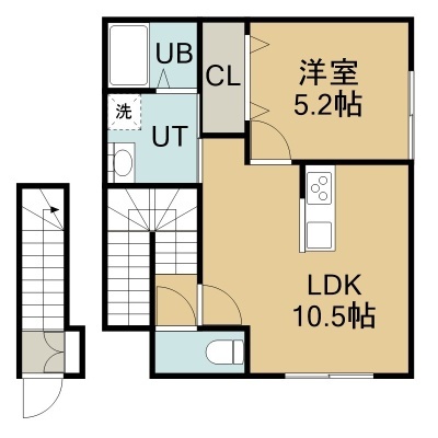1LDK(40.48m²)└ 2階:LDK10.5帖 洋室5.2帖
