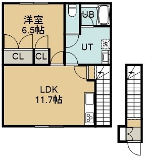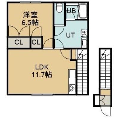 1LDK(42.97m²)└ 2階:LDK11帖 洋室6.5帖