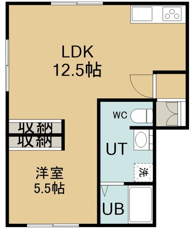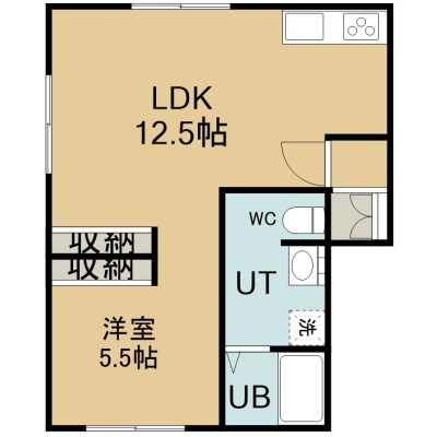 1LDK(44.69m²)└ 1階:LDK12.5帖 洋室5.5帖