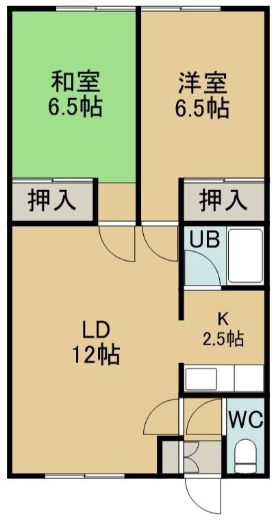 2LDK(54m²)└ 2階:LD12帖 K2.5帖 洋室6.5帖 和室6.5帖