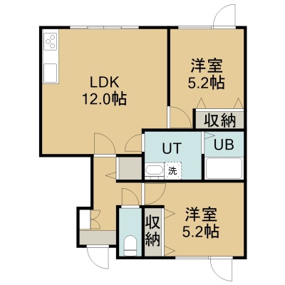2LDK(60.24m²)└ 1階:LDK12帖 洋室5.2帖 洋室5.2帖