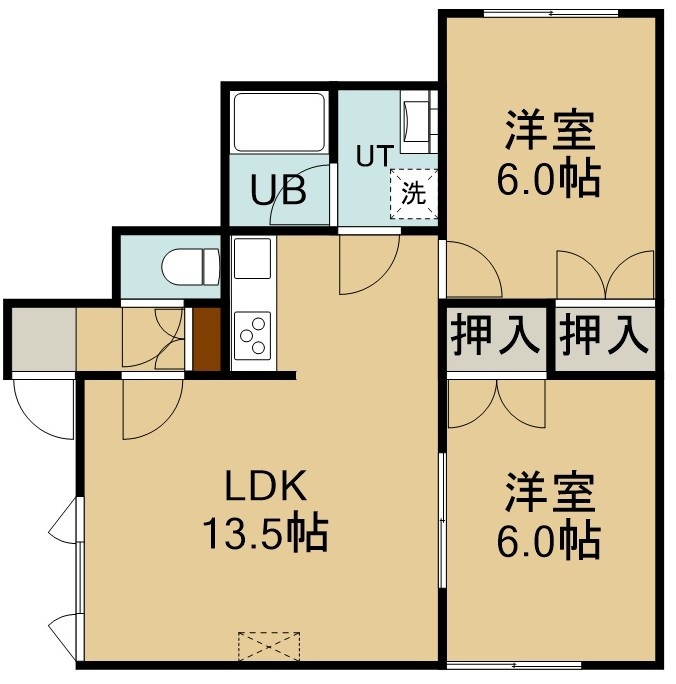 2LDK(54m²)└ 2階:LDK13.5帖 洋室6帖 洋室6帖