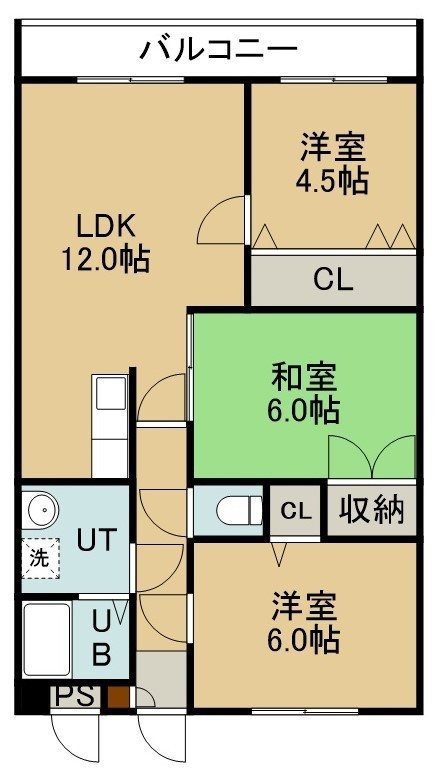 3LDK(62.73m²)└ 3階:LDK12帖 洋室6帖 和室6帖 洋室4.5帖