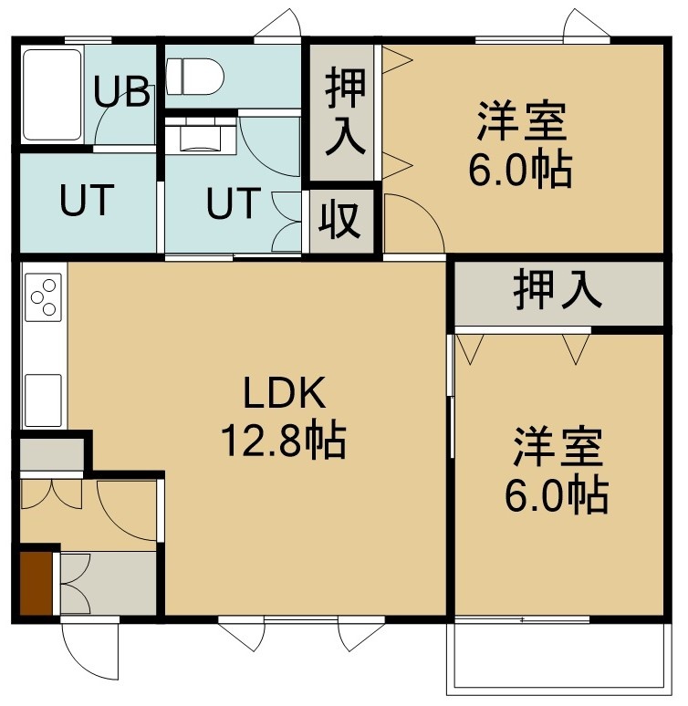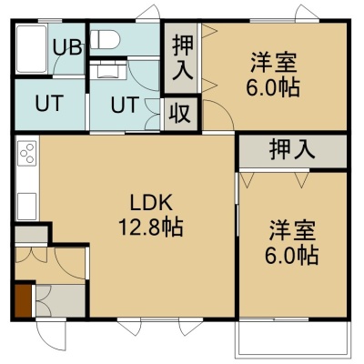 2LDK(59.42m²)└ 1階:LDK12.8帖 洋室6帖 洋室6帖