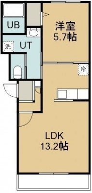 1LDK(43.94m²)└ 1階:LDK13.2帖 / 2階:洋室5.7帖