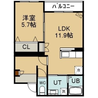 1LDK(43.71m²)└ 2階:LDK11.9帖 洋室5.7帖