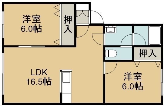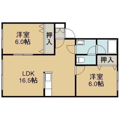2LDK(59.4m²)└ 2階:LDK16.5帖 洋室6帖 洋室6帖