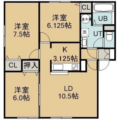 3LDK(73.35m²)└ 1階:LDK13.6帖 洋室7.5帖 洋室6.1帖 洋室6帖