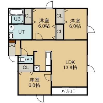 3LDK(73.08m²)└ 1階:LDK13.8帖 洋室6帖 洋室6帖 洋室6帖
