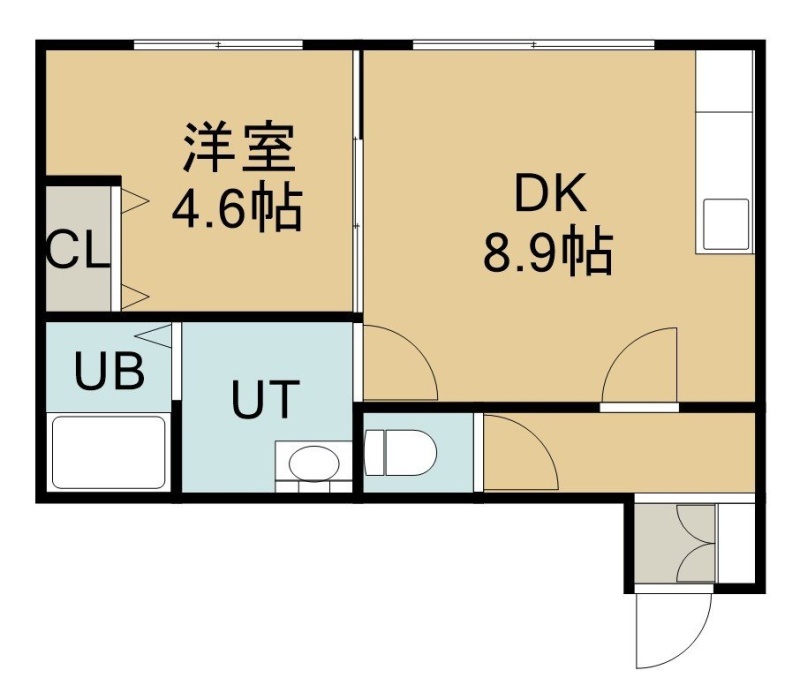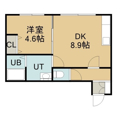 1DK(34.36m²)└ 2階:DK8.9帖 洋室4.7帖