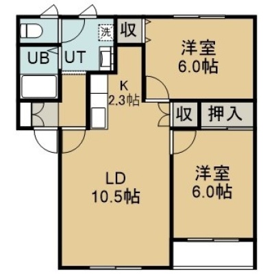 2LDK(54.54m²)└ 1階:LDK12.8帖 洋室6帖 洋室6帖