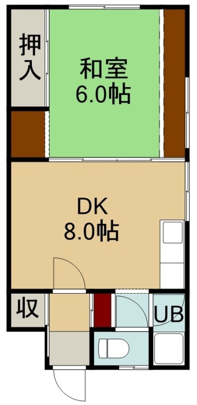 1DK(36.69m²)└ 1階:DK8帖 和室6帖