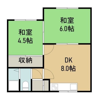 2DK(40m²)└ 2階:DK8帖 和室6帖 和室4.5帖