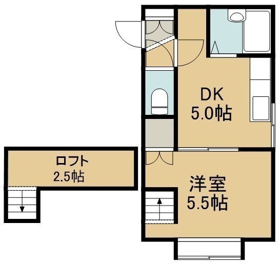 1DK(29.62m²)└ 1階:DK5帖 洋室5.5帖 その他2.5帖