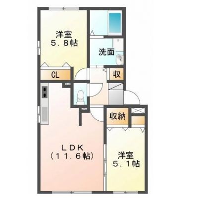 2LDK(52.93m²)└ 1階:LDK11.6帖 洋室5.8帖 洋室5.1帖
