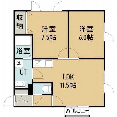 2LDK(52.9m²)└ 2階:LDK11.5帖 洋室7.5帖 洋室6帖