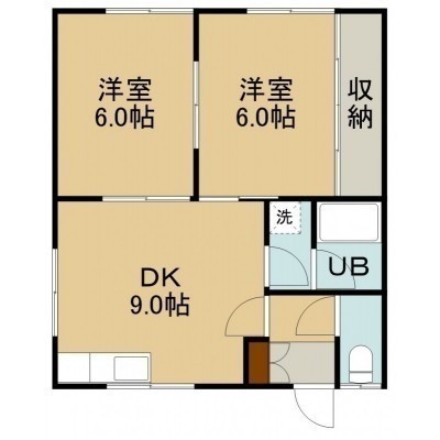 2DK(46.37m²)└ 2階:DK9帖 和室6帖 和室6帖